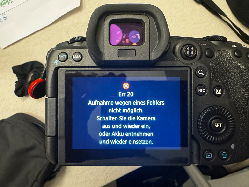 Ein kleiner Schreckmoment ereilte mich noch bei der Vorbereitung: meine Canon R5 spuckte plötzlich eine wilde Fehlermeldung aus. Hatte ich vorher auch noch nicht. Ist aber gut gegangen.