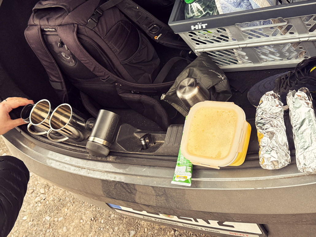 Samstagmorgen haben wir uns wie immer früh getroffen und sind ruhig und entspannt zum Nürburgring gefahren. An unserer aktuellen Lieblings-Parkplatzstelle gab es dann – auch wie immer, muss man sagen – eines von Nico’s Spezial-Frühstücken, mit neuer mobiler Kaffee-„Maschine“.